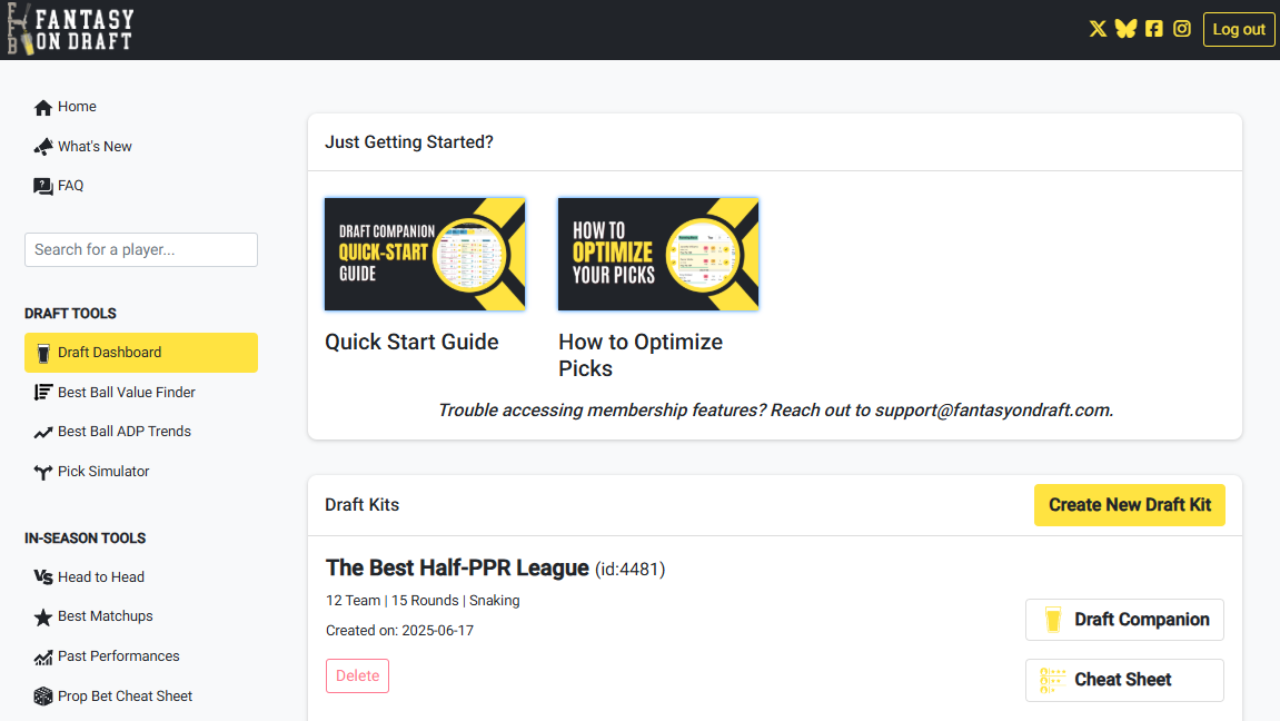 Select the button to generate a new draft kit and load the Draft Kit View.